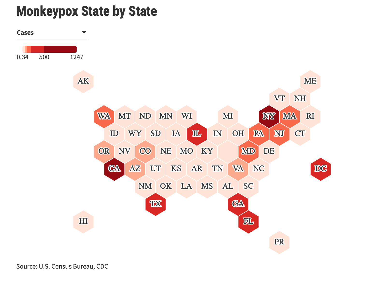 On July 23, the World Health Organization declared monkeypox a global health emergency, its highest-level warning. Globally 22,485 cases have been confirmed, according to the Centers for Disease Control and Prevention (CDC), the overwhelming majority outside of countries in central and western Africa where the virus is normally found. (WashingtonPost)